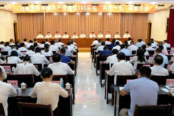6月25日上午,泾县庆祝中国共产党成立100周年“两优一先”表彰大会举行。县委书记耿鹏出席会议并讲话。县委副书记、县长施怀中主持会议。左银海、郑光明、钱会等县领导出席会议。各乡镇党委书记、组织委员,县委各部委办主要负责人,县直各单位党组(党委、党工委)主要负责人,各企业党委主要负责人,以及在党50周年老党员代表,今年发展入党、不同行业的新党员代表,受表彰的先进党组织负责人、优秀共产党员和优秀党务工作者代表参加会议。
