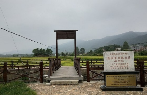 在罗里村口东首的枣树坝下,桥的北首是一座小小的叶子山,山下是叶子河,清清溪水绕过村口向西流去。原来河上群众用木头搭成的简易小桥,供行人过往,由于桥十分简易,孩子上学很不方便,新四军进驻云岭以后,行人陡增。因为它是南堡与罗里两村之间的必经要道,1938年底,由叶挺军长提议,军部副官处负责建造了一座长2米,宽2米的木质结构大桥,桥建成以后,当地群众高兴地赞颂新四军是人民的子弟兵,称这座桥为“军民桥”。全国解放后,云岭人民心中对叶挺军长无限敬爱,把这座“军民桥”改称为“叶挺桥。1956年11月22日,安徽省人民委员会宣布“叶挺桥”为全省重点文物保护单位。